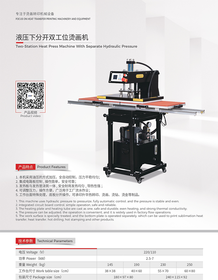 液压下分开双工位烫画机